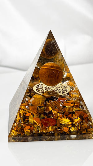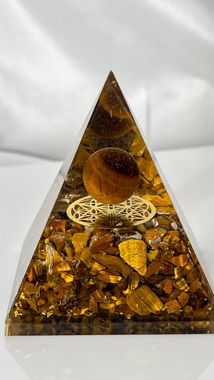 Tiger Sphere Pyramid with Logo / Tiger Eye Pyramid