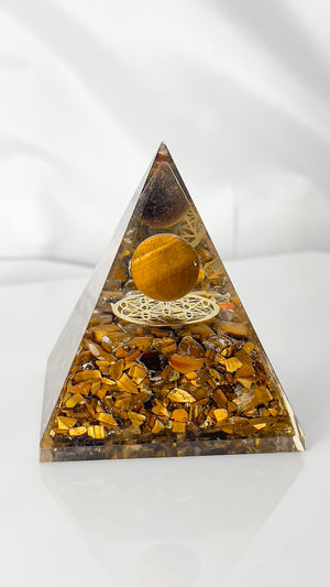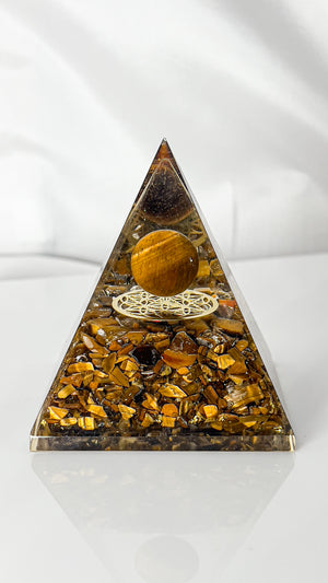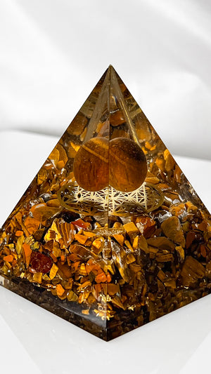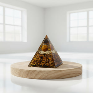 Awaken your courage and confidence with the Tiger Eye Pyramid—supercharged by ancient poojas to support personal power, luck, and protection.